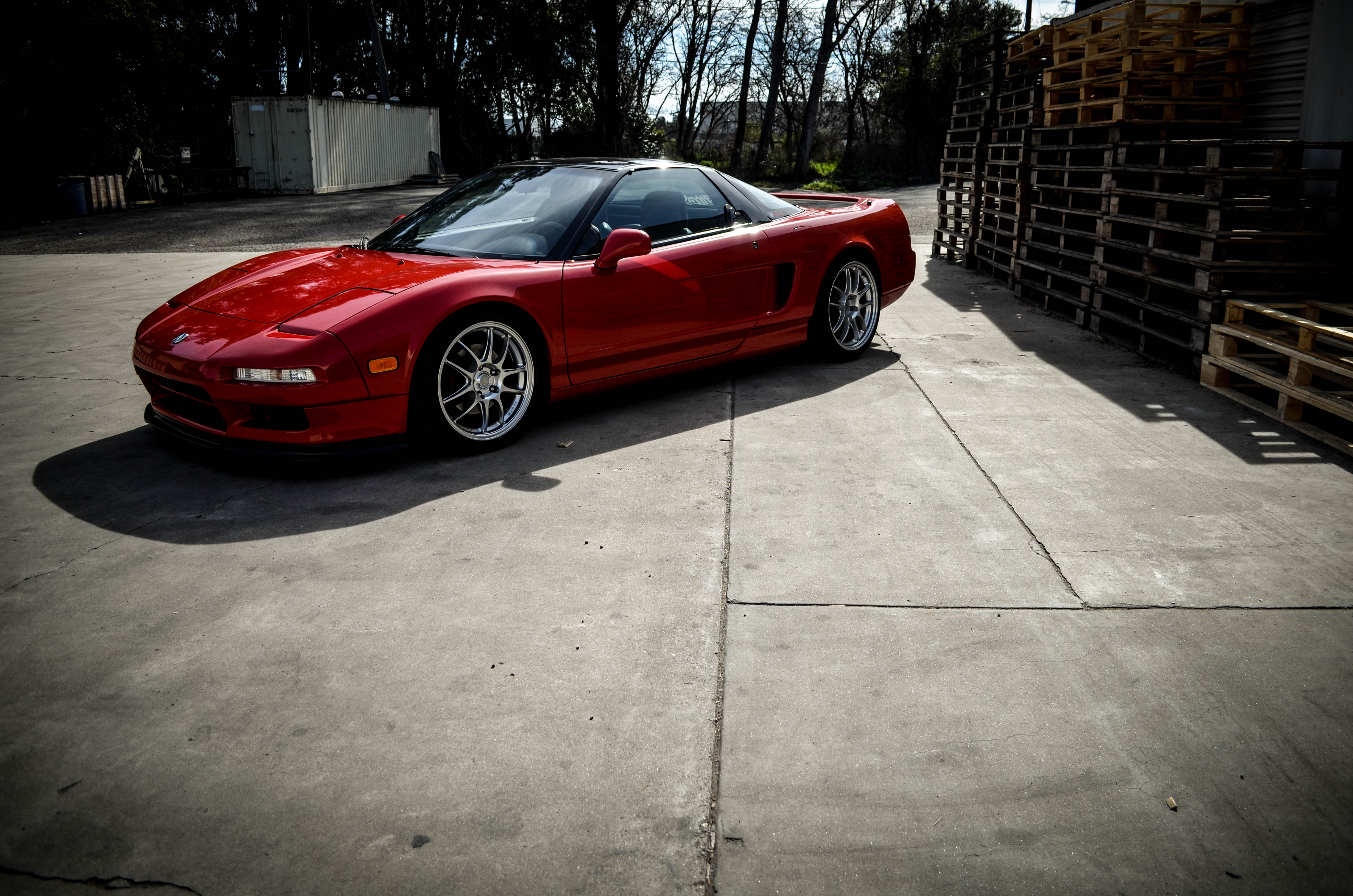 The Acura/Honda NSX, first produced in 1990, rocked the world. It set a new benchmark for supercars. In 1990, Ferrari had the 348, with a 0-60 time of 5.6 seconds. The NSX smashed that time by almost half a second. Think of it; a Honda, with a pretty big trunk and fairly good MPG (I’ve recorded a highway of 27mpg in mine), beating a Ferrari with ease. This afternoon I had the chance to take a couple of pictures of mine. As far as mods go, I have Enkei PF01’s, a Shine GT front lip, and H&R lowering springs. Coilovers are soon to come.